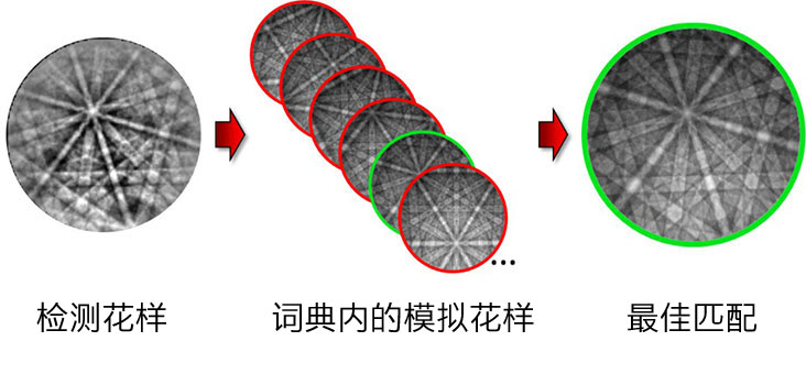花样标定是电子背散射衍射(EBSD)分析的核心。EBSD自动化的关键就是开发有效的标定算法,通常可通过两个步骤完成:(1)通过Hough变换1检测花样中的条带,以及(2)将检测到的条带之间的夹角与晶格中的面间夹角进行比较,以确定晶体取向2。多年来,一直是采用这种方法来标定。